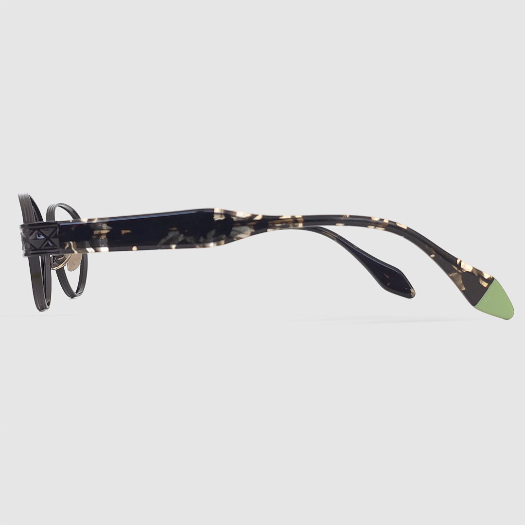 The Diana by Marjo Design Lab is an elegant fusion of delicate design and modern detailing. Featuring a lightweight oval metal frame paired with bold acetate temples, it creates a refined contrast that highlights both subtlety and strength.