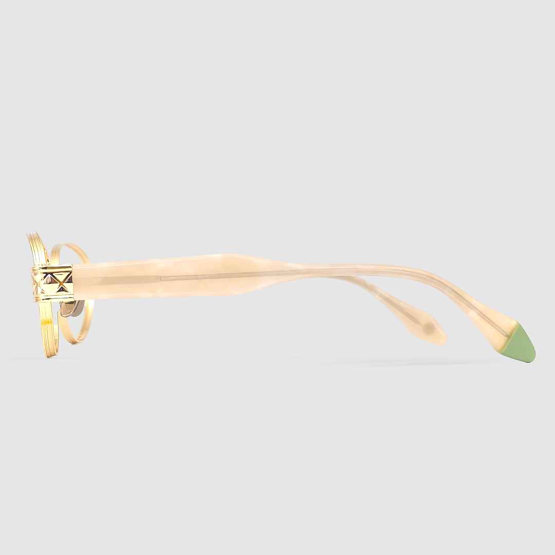 The Diana by Marjo Design Lab is an elegant fusion of delicate design and modern detailing. Featuring a lightweight oval metal frame paired with bold acetate temples, it creates a refined contrast that highlights both subtlety and strength.