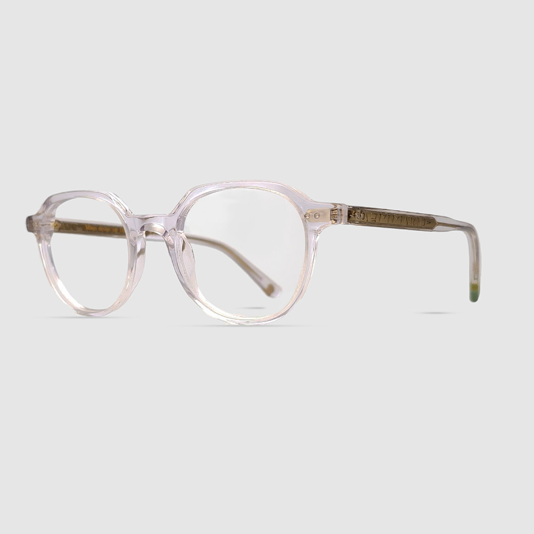 The Eros by Marjo Design Lab features a rounded square shape with smooth curves and a subtle keyhole bridge. Its balanced silhouette blends the softness of round frames with the structure of rectangular lines, creating a versatile and timeless design.