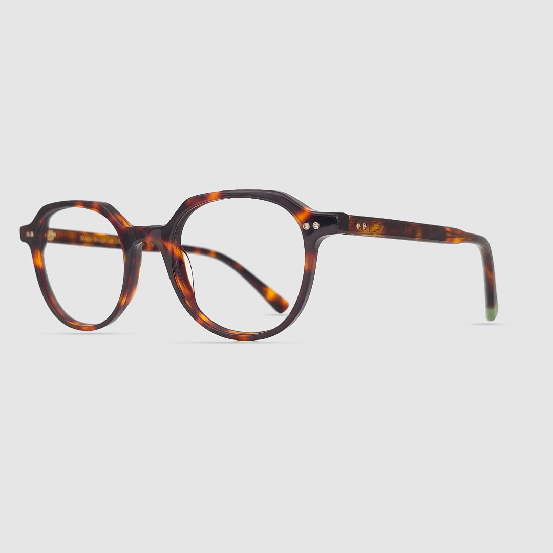 The Eros by Marjo Design Lab features a rounded square shape with smooth curves and a subtle keyhole bridge. Its balanced silhouette blends the softness of round frames with the structure of rectangular lines, creating a versatile and timeless design.