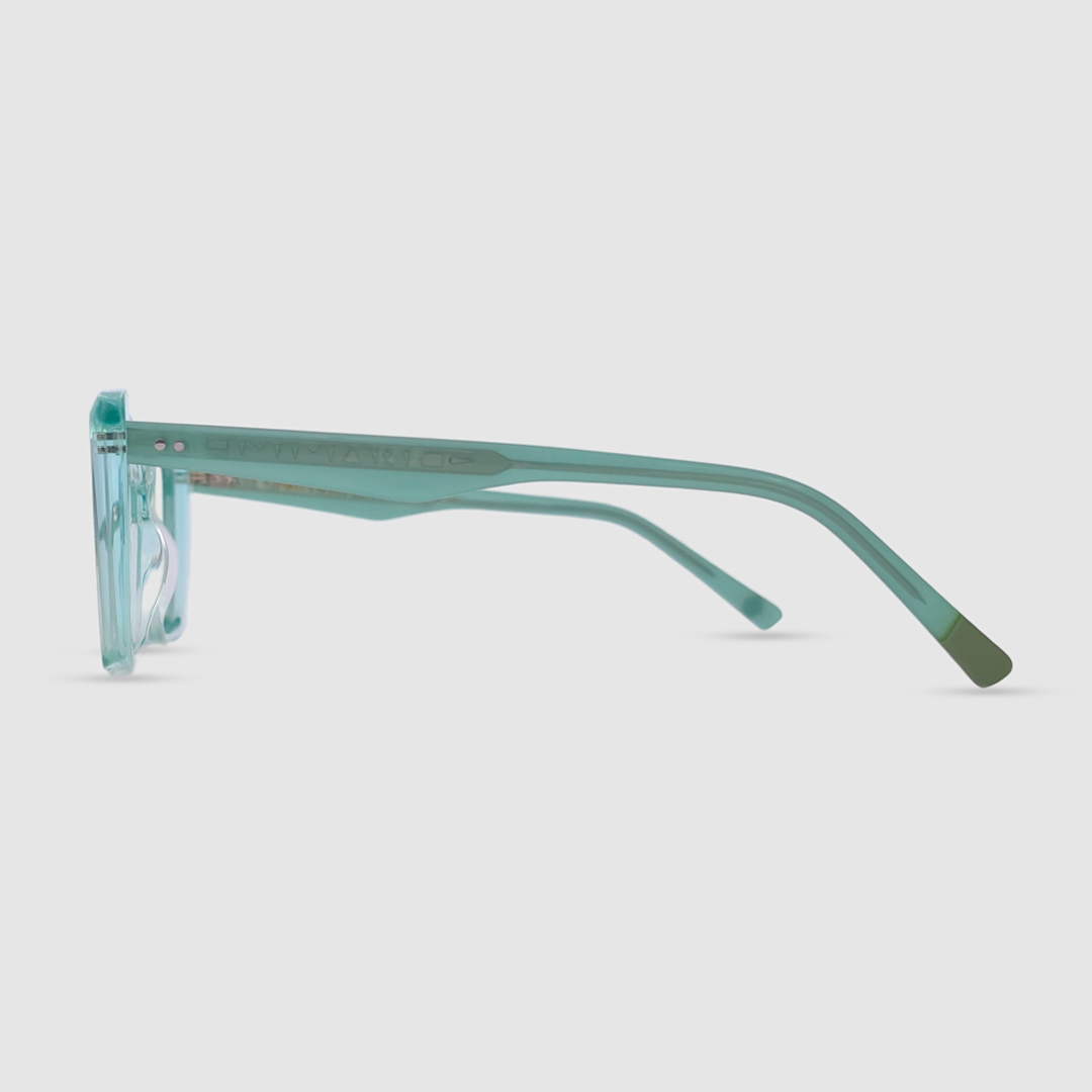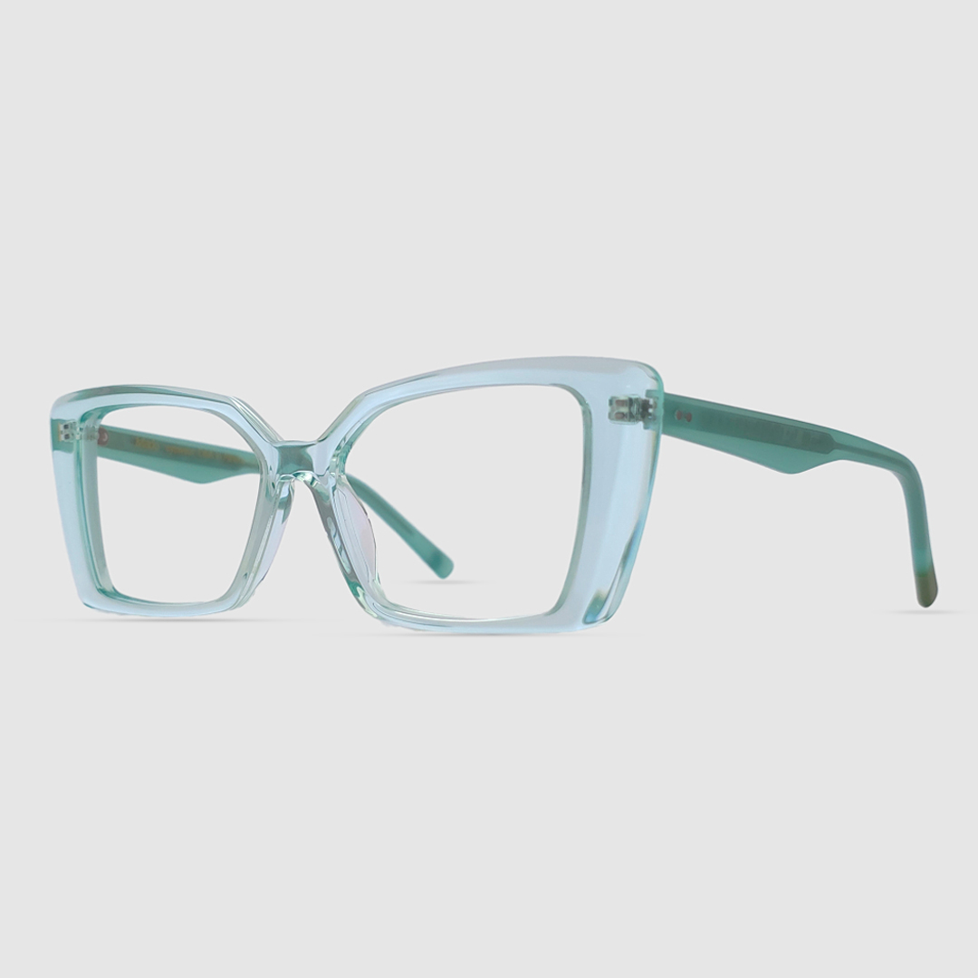 The Gemini features a geometric cat-eye shape with sharp, angular edges. Its wide lenses and slightly upswept outer corners blend the structure of square frames with the elegance of a cat-eye, creating a bold and modern silhouette.
