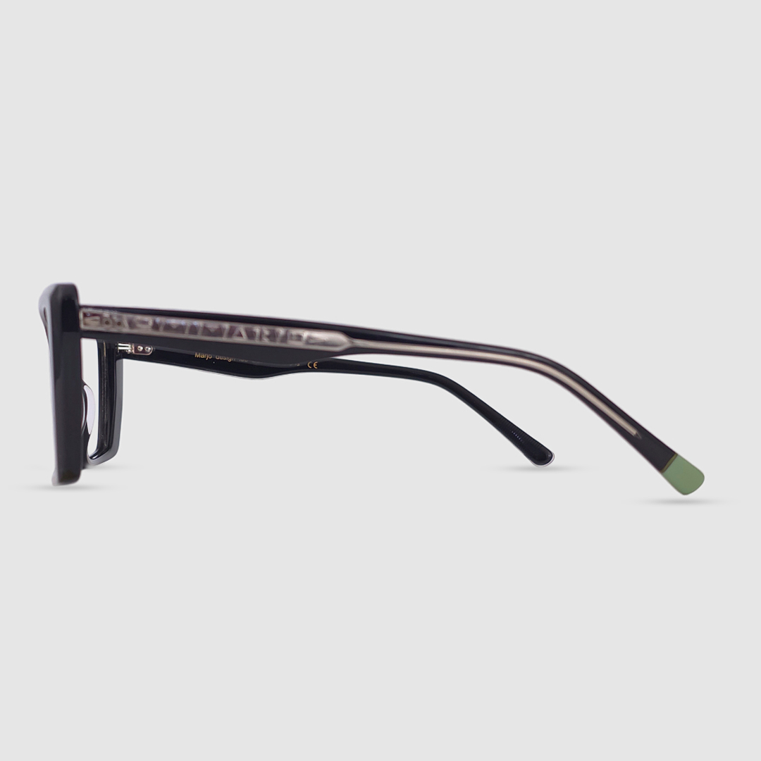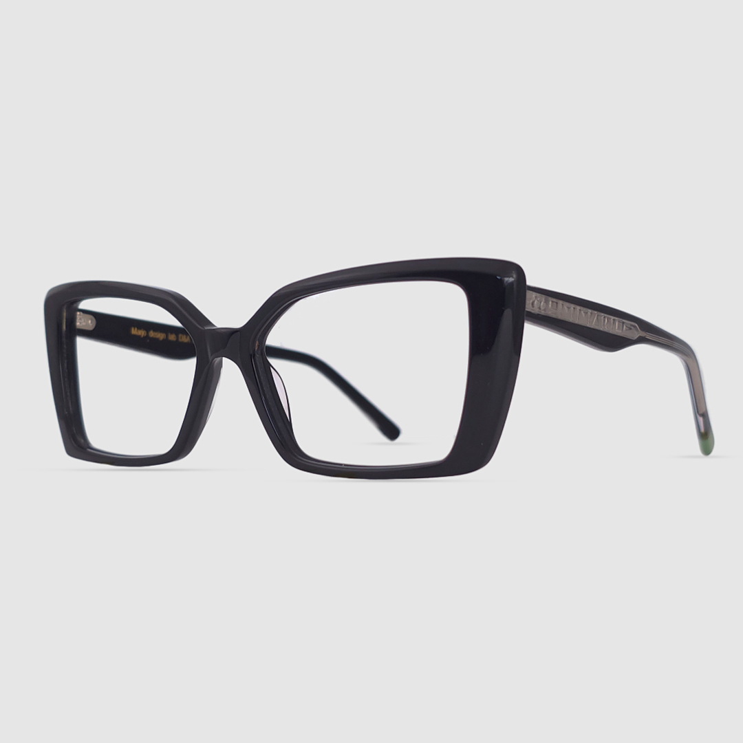 The Gemini features a geometric cat-eye shape with sharp, angular edges. Its wide lenses and slightly upswept outer corners blend the structure of square frames with the elegance of a cat-eye, creating a bold and modern silhouette.