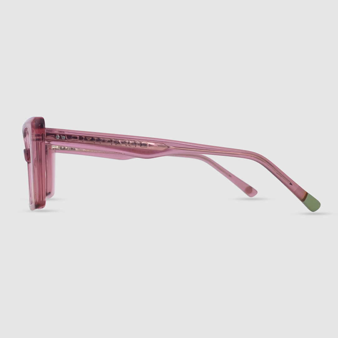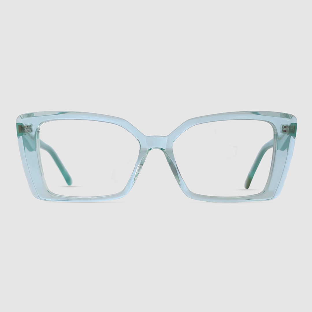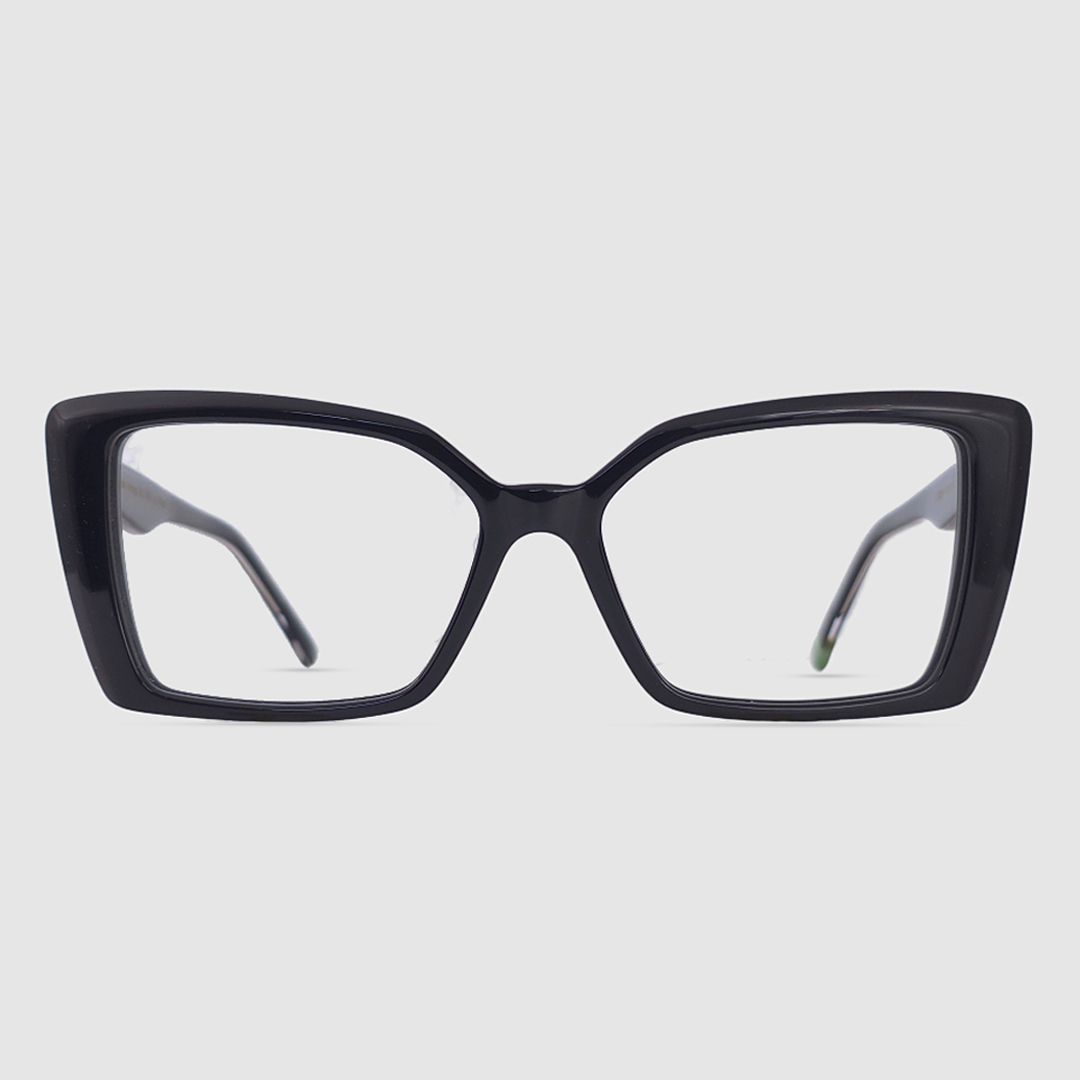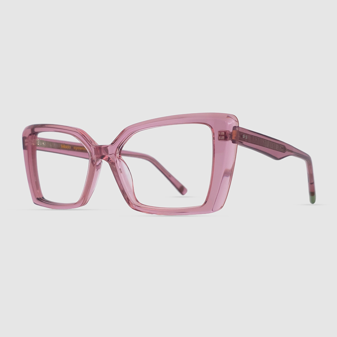 The Gemini features a geometric cat-eye shape with sharp, angular edges. Its wide lenses and slightly upswept outer corners blend the structure of square frames with the elegance of a cat-eye, creating a bold and modern silhouette.